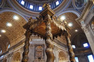 Bernini is one of the most talented artists to ever walk the face of the earth, and has many other pieces displayed throughout the basilica, the most famous of which is the baldacchino, (shown below) the breathtaking canopy of bronze over the central altar, completed in 1634.